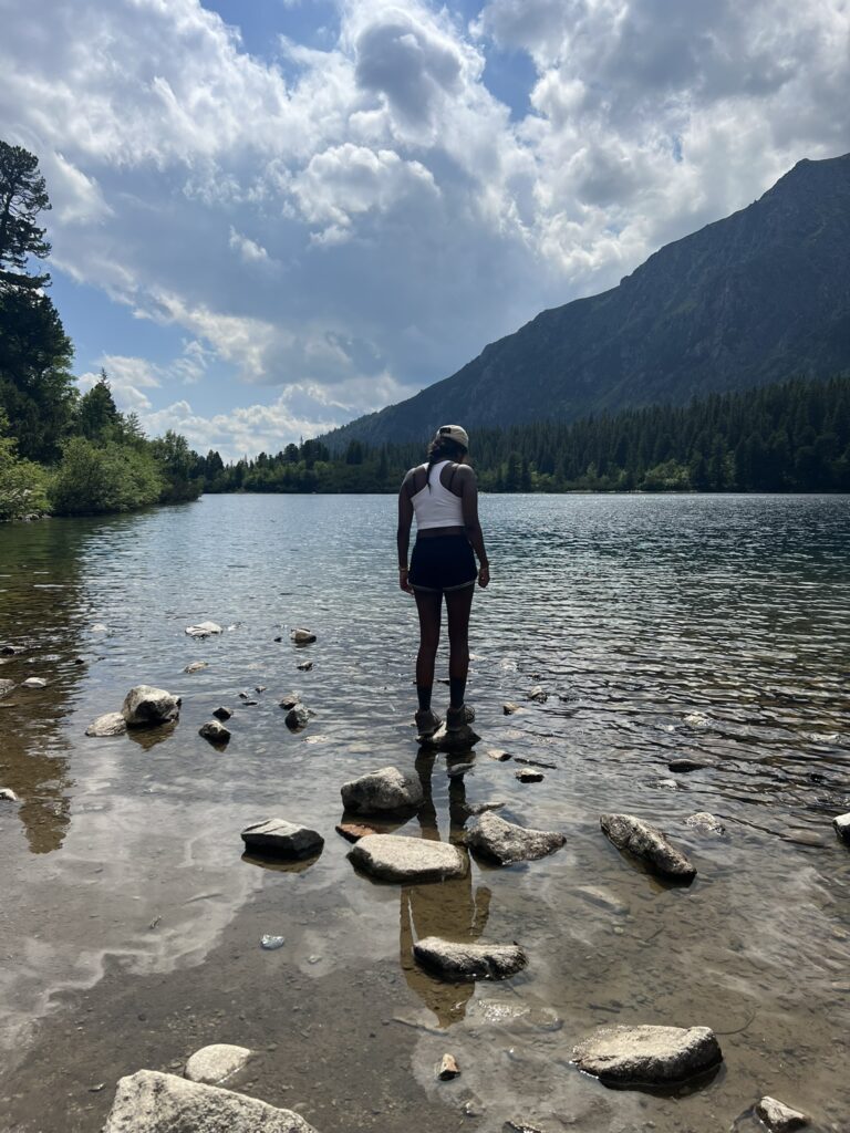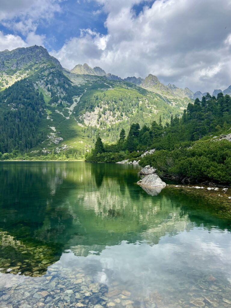 Vi startede fra ‘Lakes of Love’. Det var fascinerende at se, hvordan træerne blev færre og mindre, mens vi gik op gennem trægrænsen for til sidst at stå ved søen Popradske omringet af høje tinder.