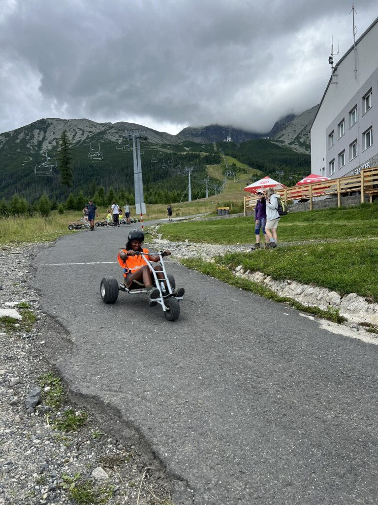 Vores datter havde en fest, da hun tog halvdelen af turen ned i en mountain cart.