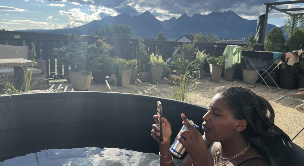 Vi havde fundet en hyggelig lejlighed med spa i den lille søvnige by Velka Lomnika. Herfra er der virkelig smuk udsigt over bjergene og meget roligt. Ulempen ved at bo her, er at udvalget af restauranter er meget lille. Men heldigvis er der et fint køkken og mulighed for selv at lave mad.